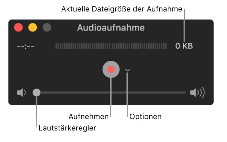 - Das Audioaufnahme-Fenster öffnet sich