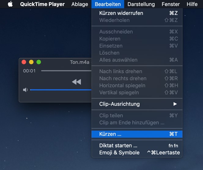 Dazu klicken Sie auf „Bearbeiten“ -> „Kürzen …“