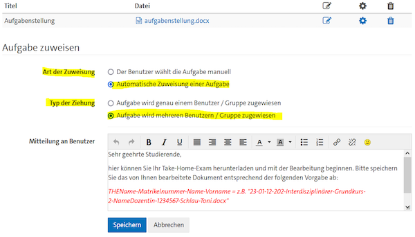Wenn das Take-Home-Exam im Aufgabenbaustein durchgeführt wurde: