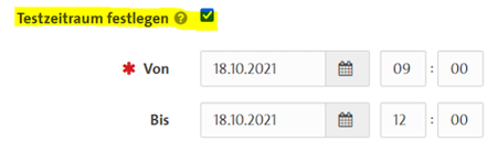 OpenOlat verweist hier indirekt darauf, dass neben einem Testzeitraum auch eine Testzeit festgelegt werden kann: