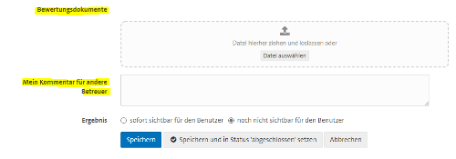 - einen Kommentar eingegeben und zusätzlich ein Bewertungsdokument hochgeladen haben (beides optional)