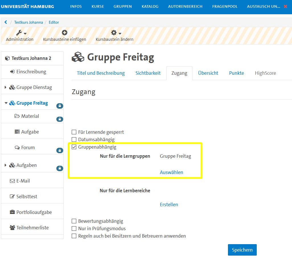 Abb. 2: Gruppenabhängiger Zugang zu Strukturbausteinen in einem Kurs