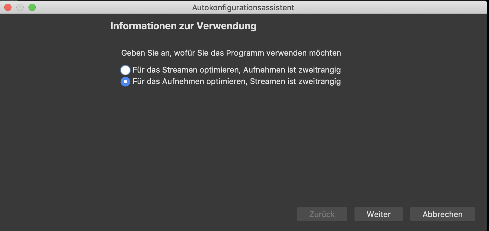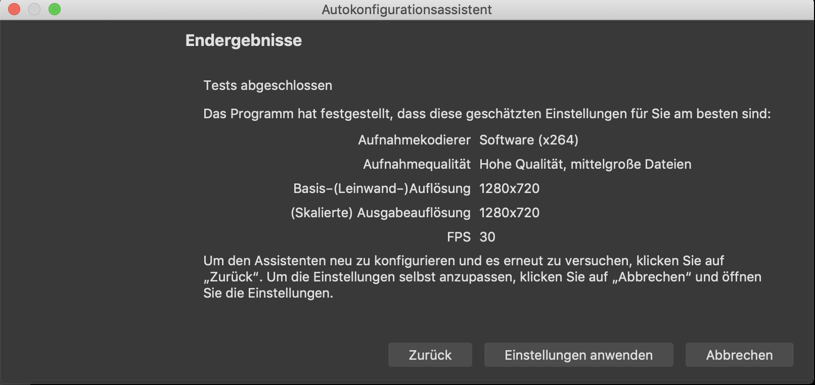Upon the first launch of OBS, the Auto-configuration Wizard helps you set the optimal settings. The wizard can also be opened later via the "Tools" tab.