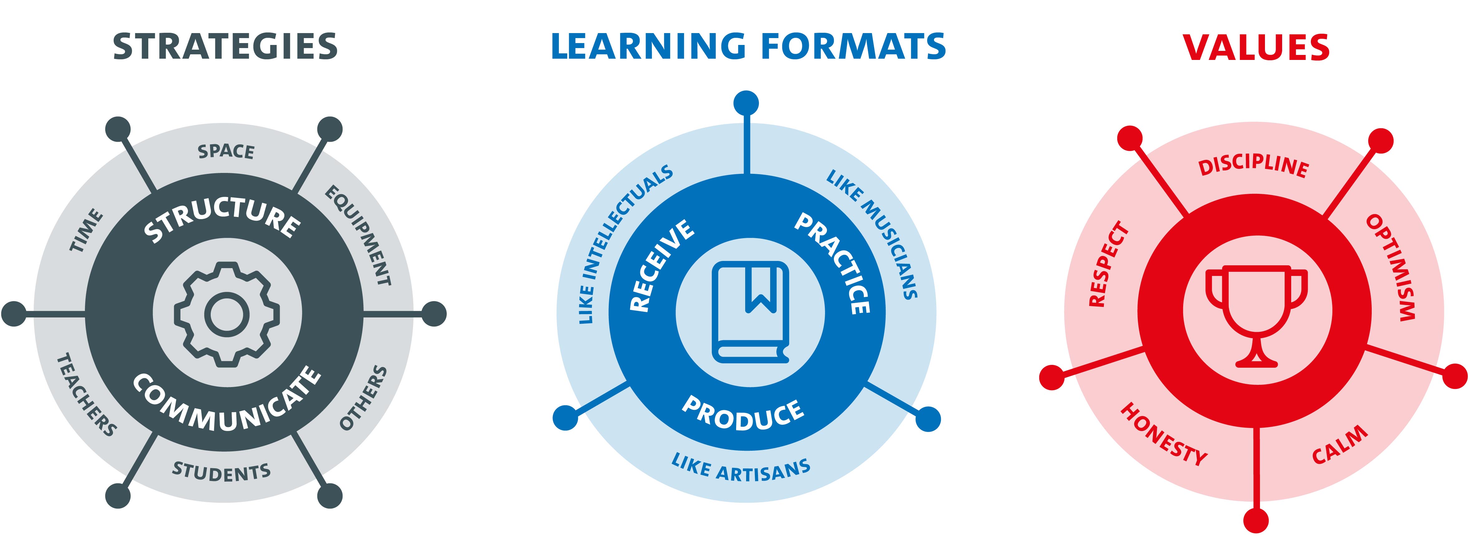Imagine a receiving person as an intellectual (informing themselves), the practicing person as a musician (rehearsing), and the producing person as an artisan (creating). In your online studies, be an intellectual, a musician and an artisan at the same time! |