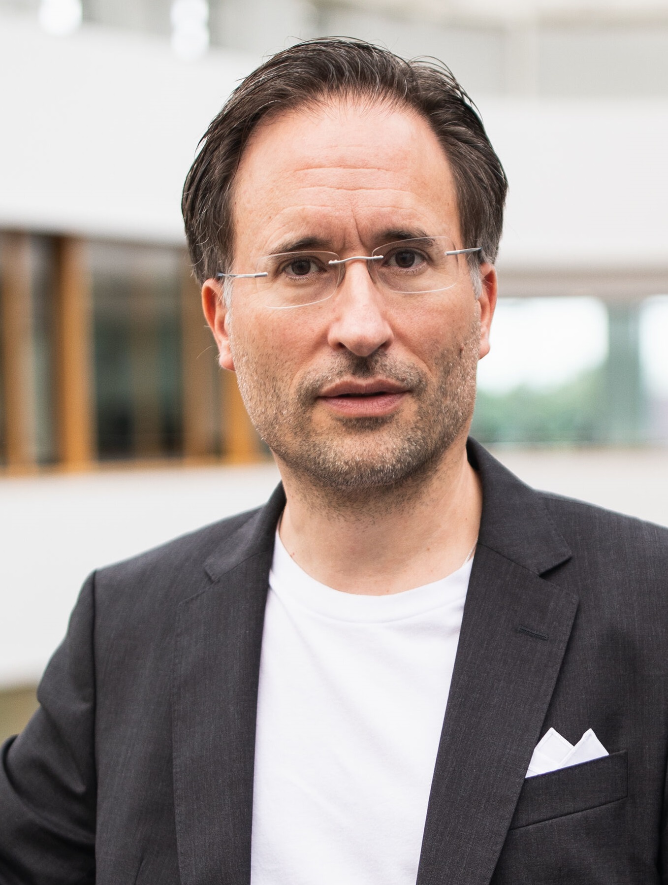 The CFEL building stands out due to its round shape. Photo: University of Hamburg / EsfandiariProf. Dr. Florian Grüner is from the field of compact X-ray sources based on laser plasma acceleration. Unsurprisingly, he works in a building with a name that includes the word “laser.” The striking Center for Free-Electron Laser Science (CFEL for short) in the northern part of the Science City has a massive foundation and a light and airy office rotunda. According to Grüner, even partners from industry find it stunning again and again. “We cooperate with big players such as Siemens Healthineers, Audi, and Biontech. CFEL guests are usually fascinated right away. The building speaks for itself—given its enormous size alone. Also, the offices are made of glass, thus creating an open atmosphere. On all floors, tea bars can be found everywhere, which is really great. There is also a café on the ground floor—what more could you ask for in Hamburg weather?”