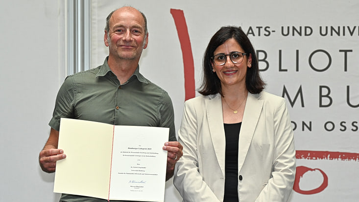 In addition to the University of Hamburg, the Ministry of Science, Research and Equalities also honors particularly excellent university learning opportunities every year. This year’s awards took place on 21 July 2025 in the State and University Library Carl von Ossietzky. Seven University of Hamburg lecturers also received awards.