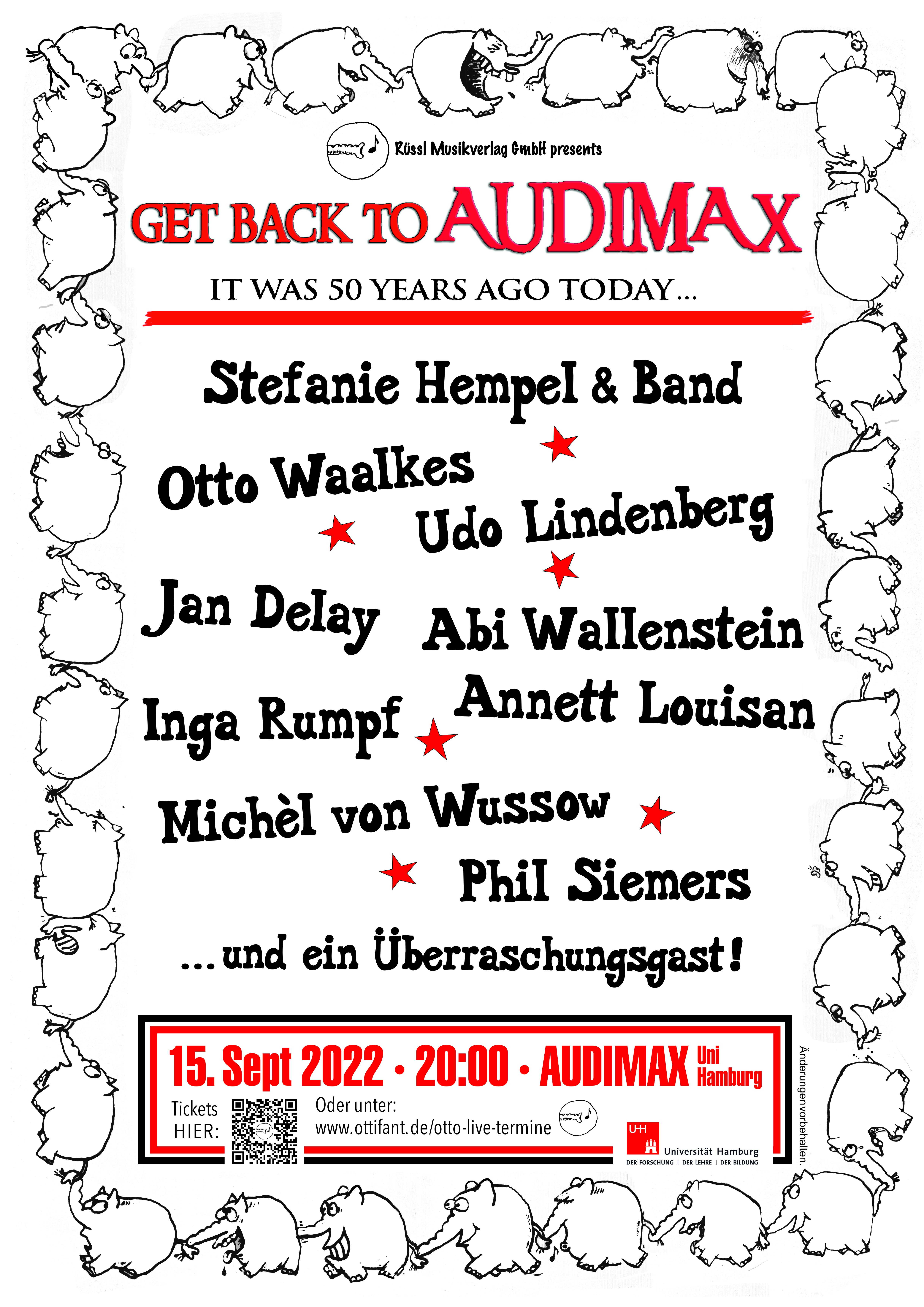 The concert, on 15 September 1972, titled “Otto Live im Audimax” was recorded on vinyl and founded his breakthrough onto the national stage, remaining a classic in the history of German humor. “This is where it all started, exactly 50 years ago: ‘Otto Live im Audimax’. That is one reason to do it again...” concludes Otto.