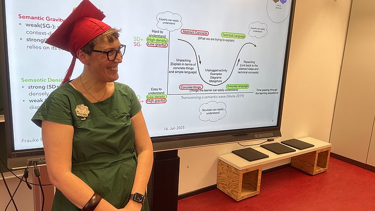 Am 16. Juli 2025 hat Frauke Ritter ihre informatikdidaktische Dissertation mit dem Titel "Study the Effect of Block-based Programming Languages on Students' Algorithmic Thinking" erfolgreich verteidigt. Wir gratulieren sehr herzlich!
