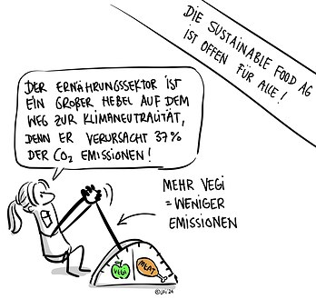 Die Arbeitsgruppe Sustainable Food hat das Ziel, das Essensangebot in den Hamburger Mensen nachhaltiger zu gestalten. Dafür hat sich die AG einer bereits bestehenden Gruppe des AStA und des Green Office der Uni Hamburg angeschlossen. Diese hatte bereits einige Forderungen an das Studierendenwerk gestellt und steht seither im ständigen Austausch mit dem STW. Gemeinsam wurden so unter anderem ein Aktionstag zum Weltvegantag und Aktionswochen während des „Veganuary“ organisiert. Zudem wurde mit dem veganen „Pottkieker-Gericht“ die Forderung nach mindestens einem veganen Gericht täglich in jeder Mensa umgesetzt. In der Zukunft steht nun auf der Agenda, weitere komplett vegetarische/vegane Mensen umzusetzen und den Anteil veganer Gerichte und Snacks zu erhöhen. Für die Forderungen bezieht sich die AG auf die Planetary Health Diet, eine an den Grenzen der planetaren Ressourcen orientierten, nachhaltigeren und gesünderen Ernährungsform. Zudem setzt sich die AG für die Reduktion von Einweggeschirr und -verpackungen ein. Interessierte sind jederzeit willkommen, die AG zu unterstützen! Erreichbar ist die AG Sustainable Food unter ag-sustainable-food"AT"uni-hamburg.de.