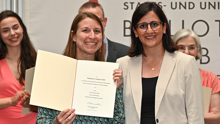 Neben der Uni Hamburg zeichnet auch die Wissenschaftsbehörde jedes Jahr besonders exzellente universitäre Lernangebote aus. Am 21. Juli 2025 wurden die diesjährigen Hamburger Lehrpreise in der Staats- und Universitätsbibliothek vergeben. Auch sieben Lehrende der UHH wurden ausgezeichnet.