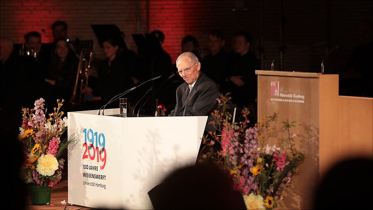 Die Festrede hielt Dr. Wolfgang Schäuble zu Ehren seiner Alma Mater. Der Bundestagspräsident hatte in den 1960er-Jahren an der Hochschule Rechts- und Wirtschaftswissenschaften studiert und war damals in der Hamburger Hochschulpolitik aktiv.