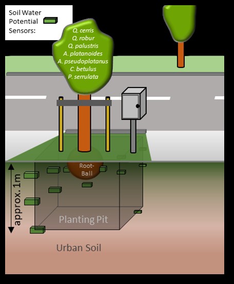Mit fortschreitendem Klimawandel wird der Wassermangel weiter zunehmen. Insbesondere nachgepflanzte junge Stadtbäume entlang von Straßen haben großen Stress, stagnieren in ihrer Entwicklung und werden nicht alt – so viel ist bereits heute bekannt. Die Bäume sterben häufig, bevor sie 30 Jahre alt sind, obwohl sie mehr als 150 Jahre alt werden könnten.