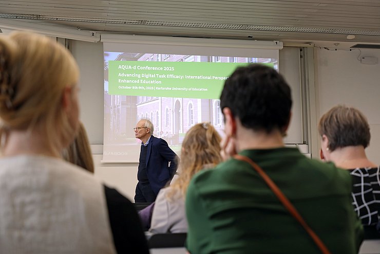 Die Konferenz „Advancing Digital Task Efficacy: International Perspectives on Technology-Enhanced Education“ fand am 8. und 9. Oktober 2025 an der Pädagogischen Hochschule Karlsruhe statt. Im Zentrum stand die Frage, wie digitale Technologie lernwirksame Merkmale von Aufgaben generieren können und welche professionellen Kompetenzen von Lehrkräften dafür notwendig sind. Ausgerichtet wurde die Tagung vom interdisziplinären Forschungs- und Nachwuchskolleg AQUA-d, das in den vergangenen Jahren gefördert durch das Ministerium für Wissenschaft, Kunst und Kultur Baden-Württemberg zu Aufgabenqualität im digital gestützten Unterricht arbeitete.