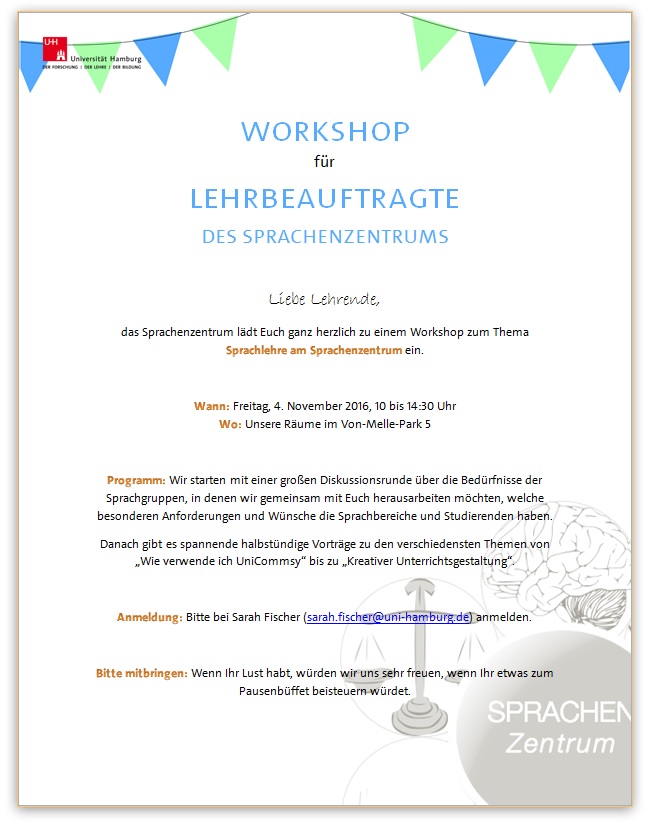 Alle Lehrbeauftragten des Sprachenzentrums sind herzlich zu unserem Workshop-Angebot für Lehrende eingeladen.