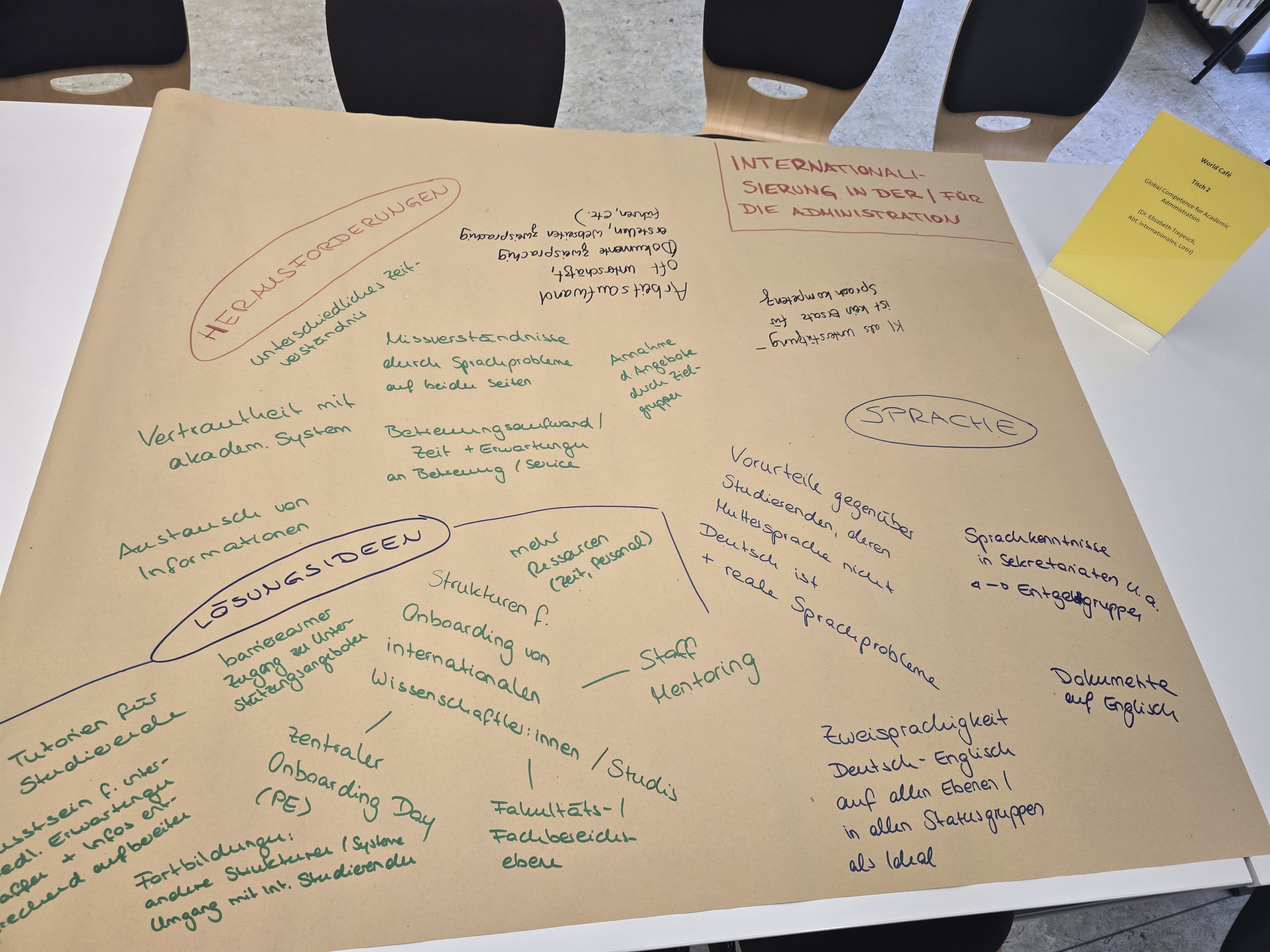 Tisch 2: Global Competence for Academic Administration (Dr. Elisabeth Trepesch, Abt. Internationales, UHH), Foto der "Tischdecke"