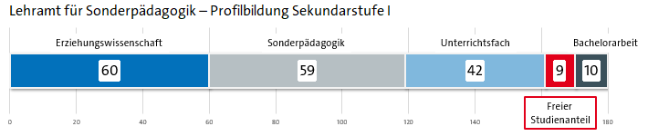 Beim Studium von Bildender Kunst oder Musik erhöht sich die Regelstudienzeit im Lehramt für Sonderpädagogik mit dem Profil Sekundarstufe auf 8 Semester. Die zusätzlichen 60 LP kommen dem Fachstudium zugute. Mit dieser Fachwahl werden 9 LP im Freien Studienanteil studiert und der Abschluss mit der Profilbildung Sekundarstufe I und II erreicht.